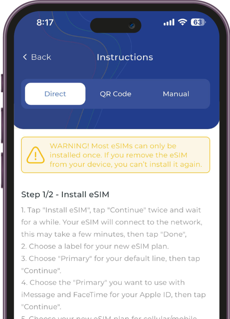Add the Travel eSIM to a compatible and unlocked device